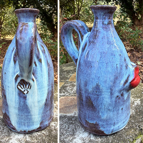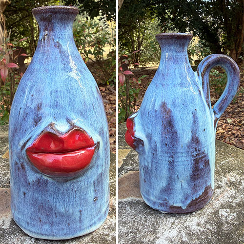 Heather Elyse Head says, "My favorite thing about my art is that it often makes people smile when they see it. I love to use bold colors and whimsical, exaggerated features on my face jugs and other pottery pieces.”