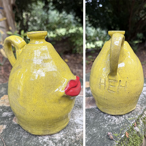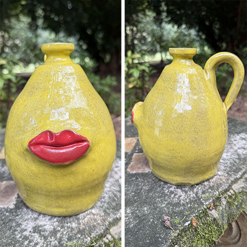 Heather Elyse Head says, "My favorite thing about my art is that it often makes people smile when they see it. I love to use bold colors and whimsical, exaggerated features on my face jugs and other pottery pieces.”