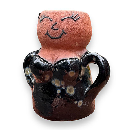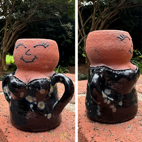 Heather Elyse Head says, "My favorite thing about my art is that it often makes people smile when they see it. I love to use bold colors and whimsical, exaggerated features on my face jugs and other pottery pieces.”