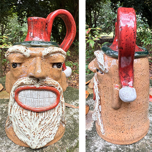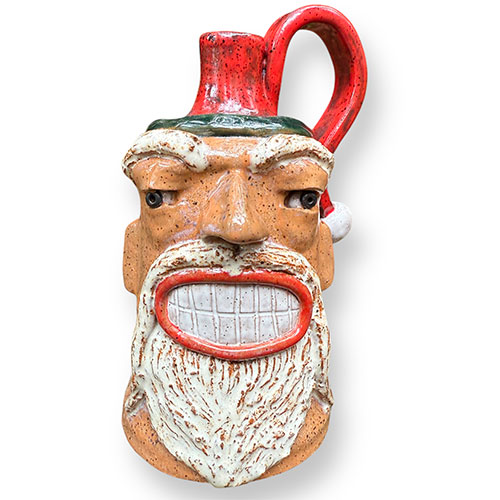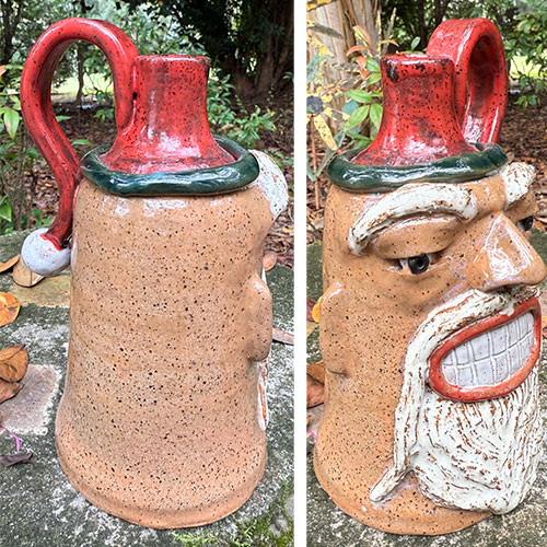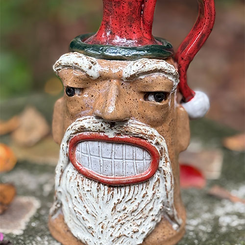 After a couple of local classes to learn some basics, Jackie Apessos taught herself everything else from there. Some work is thrown on the wheel and then hand sculpted, while other pieces are completely built by hand. Almost everything has a face. Because of significant challenges with her vision, she works mostly with smaller pieces, as she needs to hold them in her hand under intense light, and work the clay using shadows as her guide. Jackie derives so much joy when working with clay. Oh, and she loves to collect and make creepy faces.