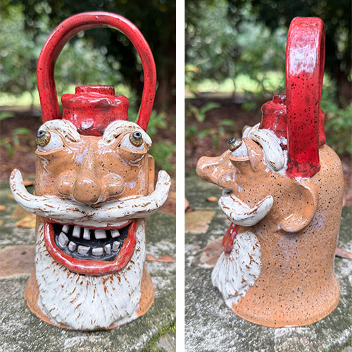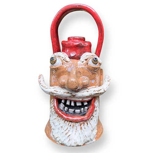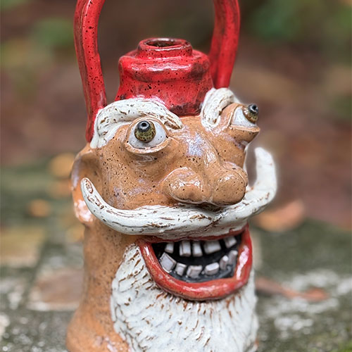 After a couple of local classes to learn some basics, Jackie Apessos taught herself everything else from there. Some work is thrown on the wheel and then hand sculpted, while other pieces are completely built by hand. Almost everything has a face. Because of significant challenges with her vision, she works mostly with smaller pieces, as she needs to hold them in her hand under intense light, and work the clay using shadows as her guide. Jackie derives so much joy when working with clay. Oh, and she loves to collect and make creepy faces.