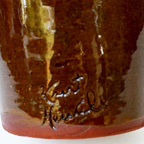 I met Kurt Hewell at a folk art festival and fell in love with his work at first sight. He was inducted into the "Living Traditions" permanent exhibition at the Folk Pottery Museum of Northeast Georgia in 2012. "There are three criteria for this recognition," said museum director Chris Brooks. "The potters must be trained by potters carrying on more than two centuries of traditional methods in the area; they must continue these traditions in their own work; and their work must be acknowledged as among the best quality of northeast Georgia folk pottery." Kurt Hewell, son of Henry Hewell, trained at the Hewell Pottery in Gillsville in Hall County.