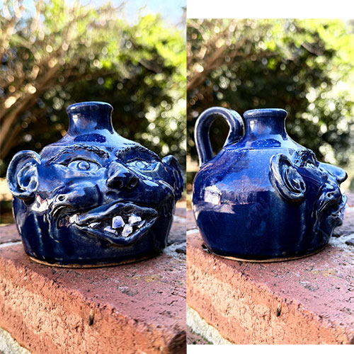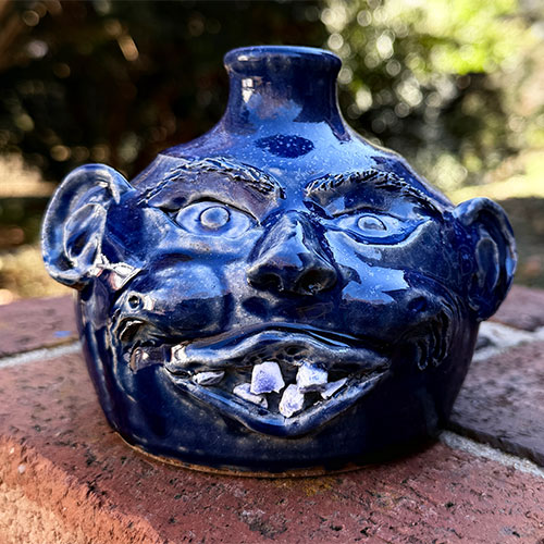 Liz Bloodgood creates pottery that blends tradition with expressive artistry. A graduate of Purdue University, Liz has developed a distinctive style rooted in the time-honored practices of wood firing and salt glazing. Her work often takes the form of face jugs and whimsical animal figures, each piece carrying a strong sense of character and storytelling.