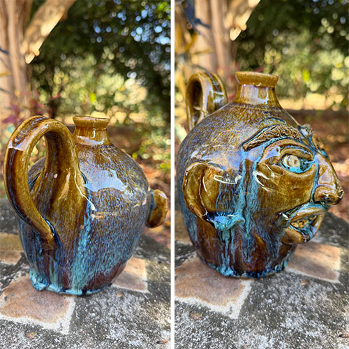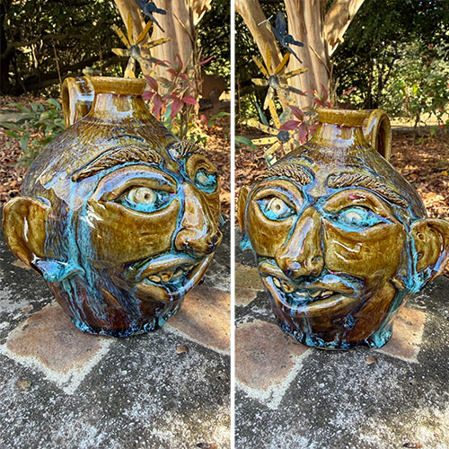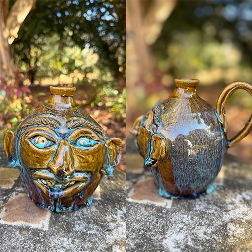 Liz Bloodgood creates pottery that blends tradition with expressive artistry. A graduate of Purdue University, Liz has developed a distinctive style rooted in the time-honored practices of wood firing and salt glazing. Her work often takes the form of face jugs and whimsical animal figures, each piece carrying a strong sense of character and storytelling.
