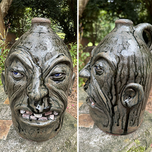 Measures 10.5" tall, with a 5" base. Rock teeth came from Lake Jocassee.