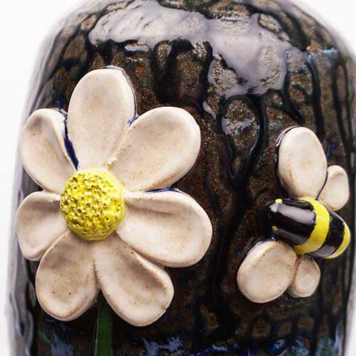Measures 11" tall, with a 5" base and 2" top. A tape measure placed around the jug measures 19" around. It should be noted that I cannot see Lolly Lynn's signature. I can attest that I purchased it from her personally.