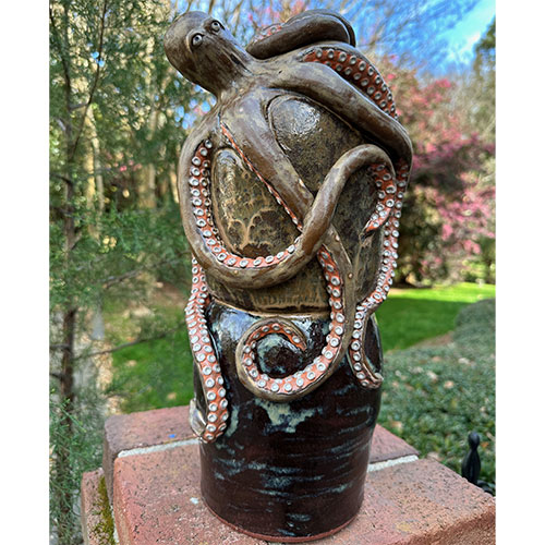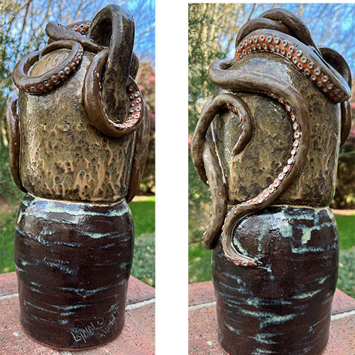 Measures 16" tall, with a 5.5" base. Approx 9" wide. I'm not going to ship this one so if you add it to your cart it will be here waiting for you.