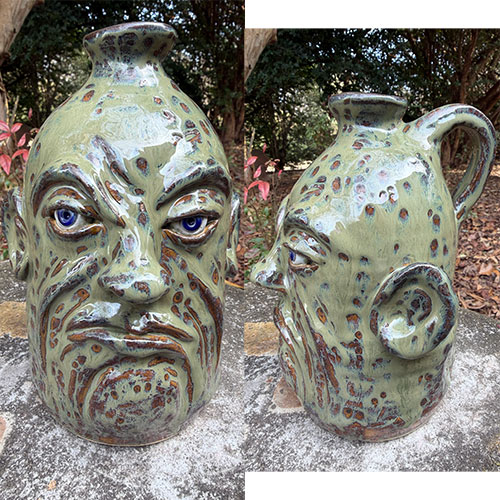 Rooted in the lineage of Georgia folk pottery yet distinctly contemporary in execution, this work balances tradition with individual voice. A strong collector piece for those drawn to nuanced expression over caricature. The bottom is inscribed; "Realization - an act of becoming fully aware of something as a fact. 3-23-25