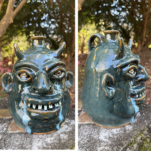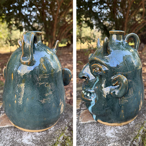 This pottery is created by self taught folk art potter Marvin Bailey, a Lancaster SC native.