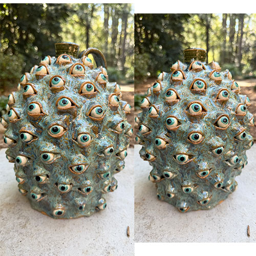 This handsome eyeball jug is 11" tall with a 5.5" base.