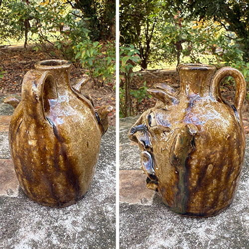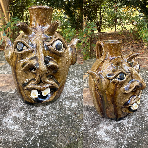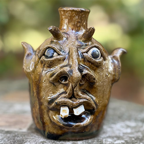 Michael Ball is a North Carolina folk art potter creating his fanciful pottery in the traditional manner. It's fair to say he enjoys the creative process when you take a moment to see the many ways he interprets a face jug.