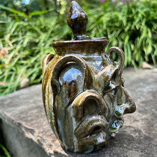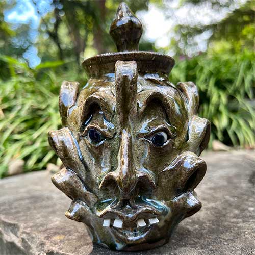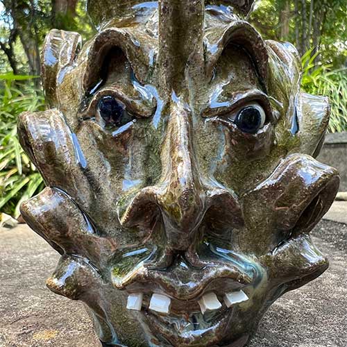 Michael Ball is a North Carolina folk art potter creating his fanciful pottery in the traditional manner. It's fair to say he enjoys the creative process when you take a moment to see the many ways he interprets a face jug.