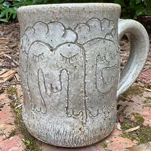 This handsome mug is 4" tall with a 3" base and 3" top opening. As always, the outside photos in natural light best represent the color.