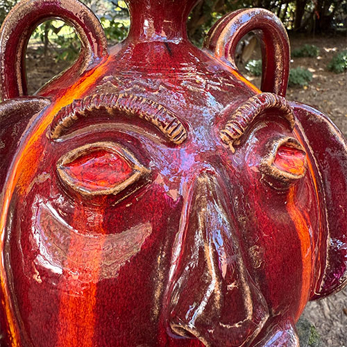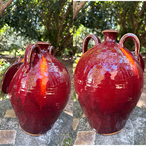 AV retired from making pottery in 2016. His work is characterized by a love of intense colour using traditional alkaline glaze in addition to many brilliant hues and colours.