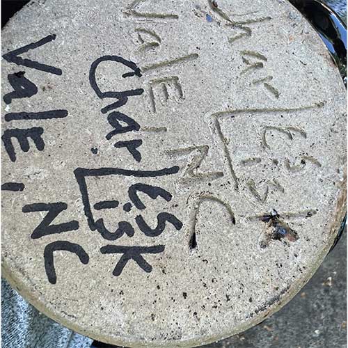 Charles "Charlie" Lisk is based in Vale, NC. He became friends with, and was influenced by Burlon Craig.This jug is 10" tall with a 4.5" base.