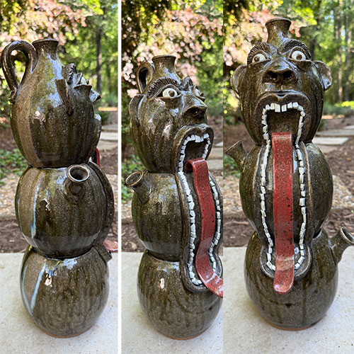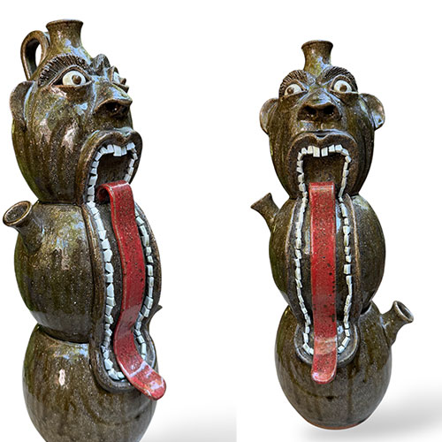 Jeff Young lives in Vale, N.C. - an area known as the Catawba Valley Pottery region. He produces wood fired folk pottery. His traditional line of pottery uses hand dug clay, ash glazes and are fired in his wood kiln. His alkaline glaze is a combination of wood ash, glass, and clay. It is a more intense and time consuming process but produces a truly unique and authentic folk style of pottery.