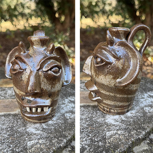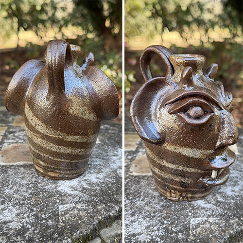 This piece by Michel Bayne is 5" tall, 4.75" wide and has a 2" base.