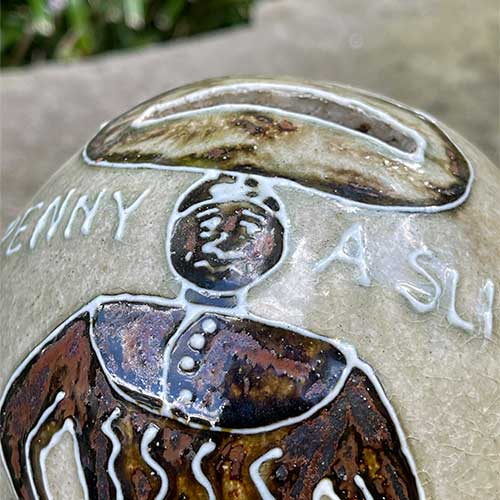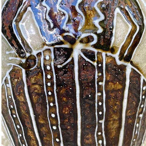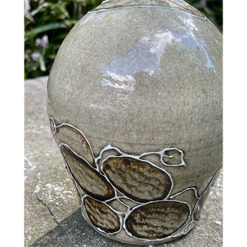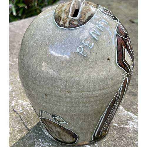 A class at the Greenville Museum of Art in 1977 prompted his initial attraction to pottery. The class was taught by Steve Ferrell, who later became an Edgefield master potter and historian. Michel continued to make pottery as a hobby throughout his working career. After surgery in 2003, and with the realization he would not be able to return to work, he decided to turn pottery into his occupation. He taught himself to make the basic forms and simple decoration. As his skill improved, his forms became much larger and his decoration much more ornate. Michel quickly attained proficiency at making large vessels and simultaneously took Edgefield decorative techniques to the next level. Adding to traditional slip trailing technique, Michel also creates detailed scenes with underglaze.