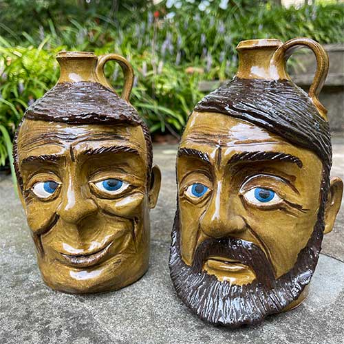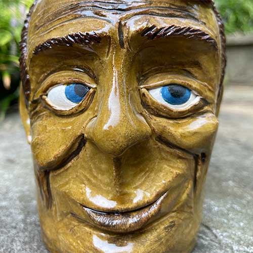 Ryan McKay has been a potter in the Seagrove N.C. since 1997. He began with the simple stuff like bowls, cups and vases but simply grew tired of competing with over 150 shops in the area and shifted from the everyday items to ugly jugs. He enjoys taking the traditional face jug and giving it a modern day twist!