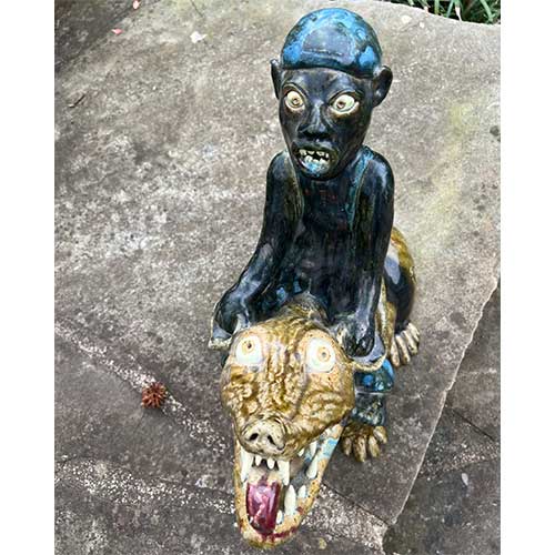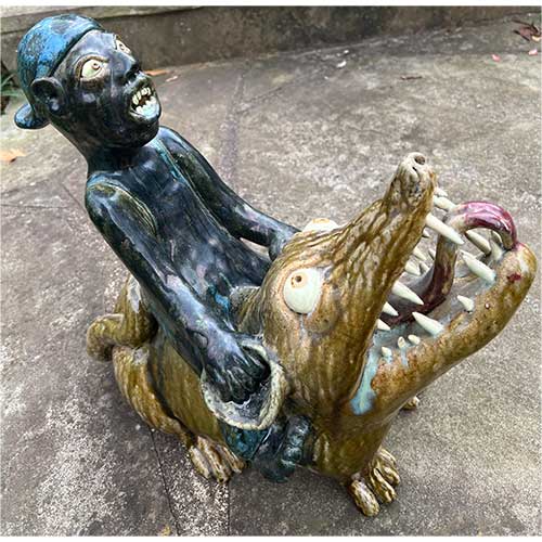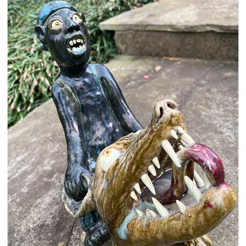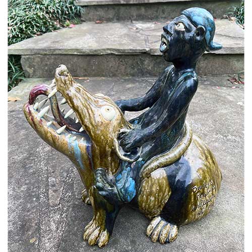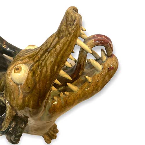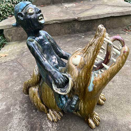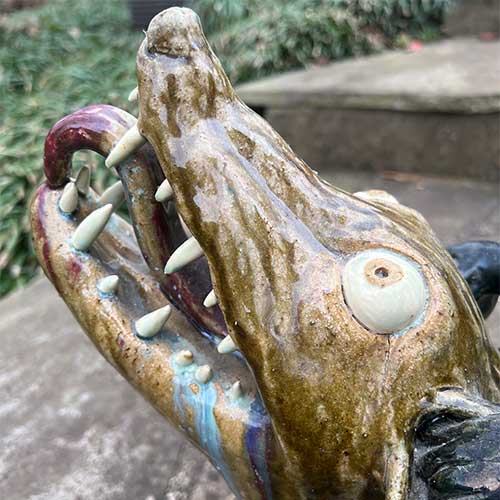 William A. Flowers is a self-taught artist from North Carolina. He began making functional pottery in 1969 after building his first potters wheel using an old truck axle, odd metal parts and a bag of cement – his earliest wood firing experience nearly set his cabin on fire! Now after years of trial, error, and endless experimentation, William has changed the face of Southern Folk Art. Together the Flowers family continues a long-standing southern folk art pottery tradition and drags it screaming towards fantastic modern extremes.