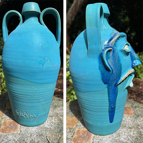 Direct from Randy Tobias, a potter for over 50 years. This piece is 13" tall and has a 4.5" base. Ships within the continental USA for $22. Does not ship outside the USA.