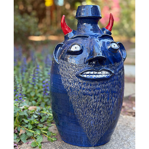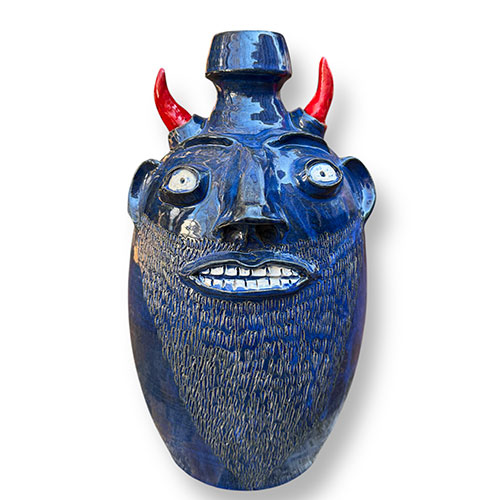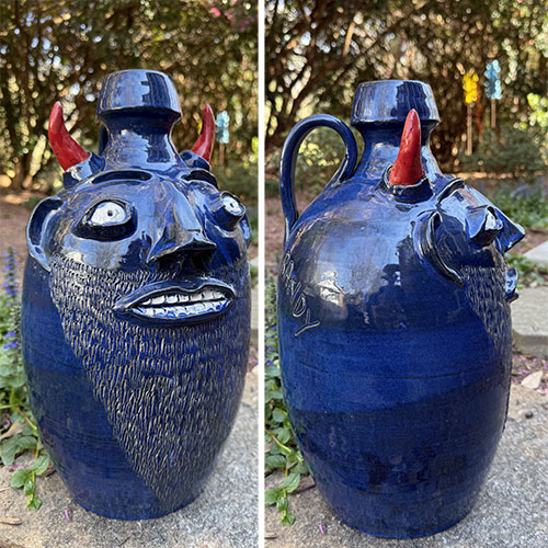 Direct from Randy Tobias, a potter for over 50 years. This blue devil is 15" tall and 10" wide with a 6" base. He does not ship. LOCAL PICK UP ONLY