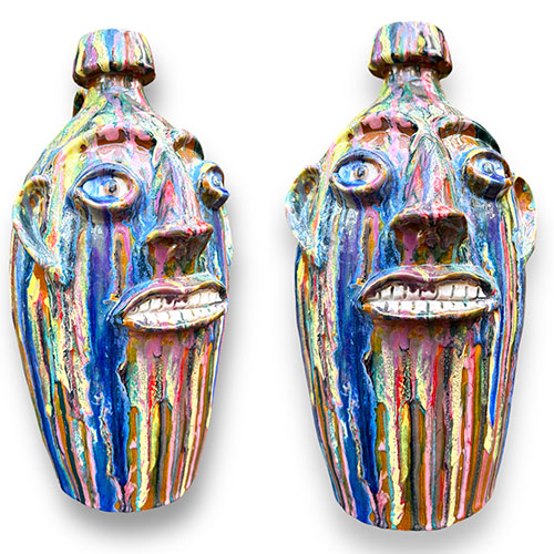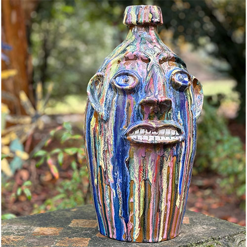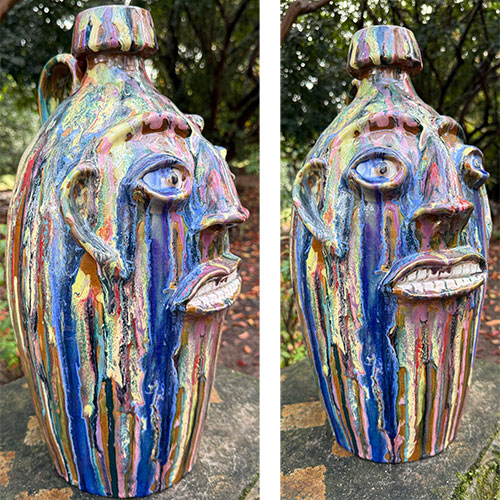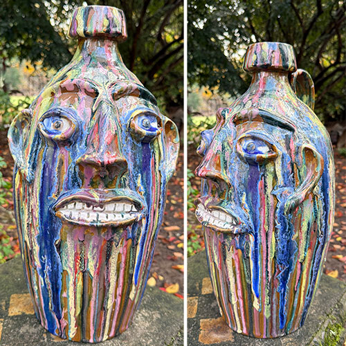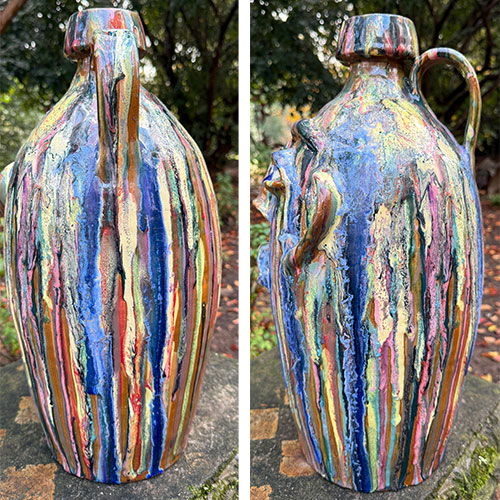 Direct from Randy Tobias, a potter for over 50 years. This piece is 18.5" tall with a 6" base. Randy makes very few of these because of the labor intenseness of applying the glaze layers.
