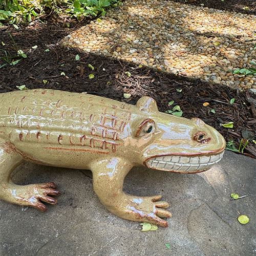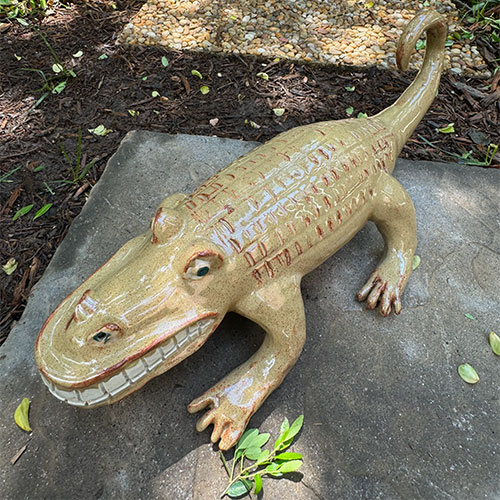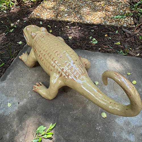 Direct from Randy Tobias, a potter for over 50 years. This piece is 19" long (nose to tail), 7" wide (left foot to right foot) and 5" wide across the body. LOCAL PICK UP ONLY.