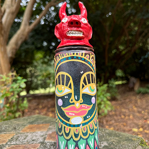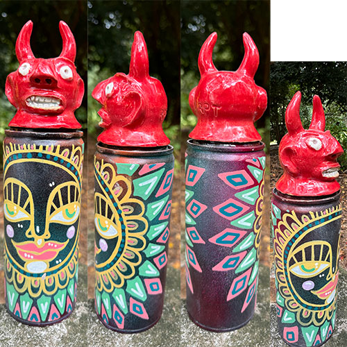 This piece is the result of a collaboration with Fawne DeRosia. The bottom is painted by Fawne and the head is courtesy of Randy. 9.75" tall with a 2.5" base.