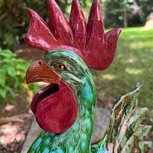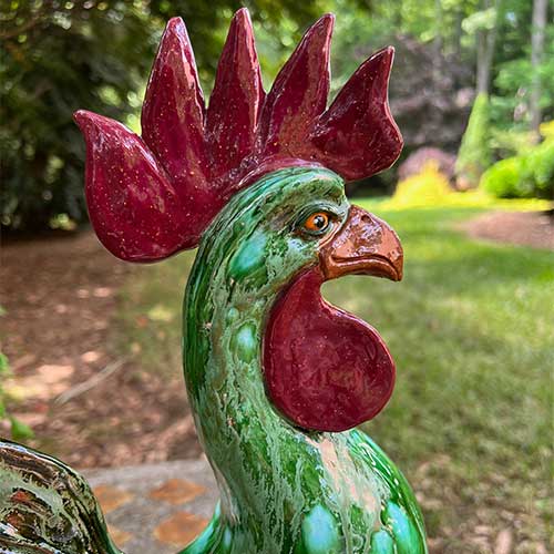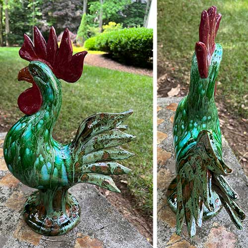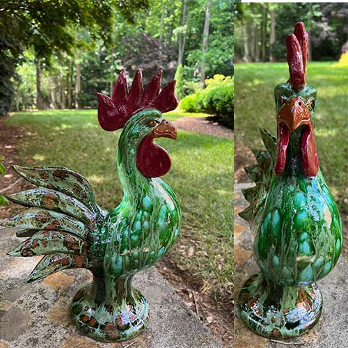 Georgia potter Rex Hogan's roosters are immediately recognizeable. He creates each piece individually using traditional Southern techniques when working with the clay, gazes and firing.