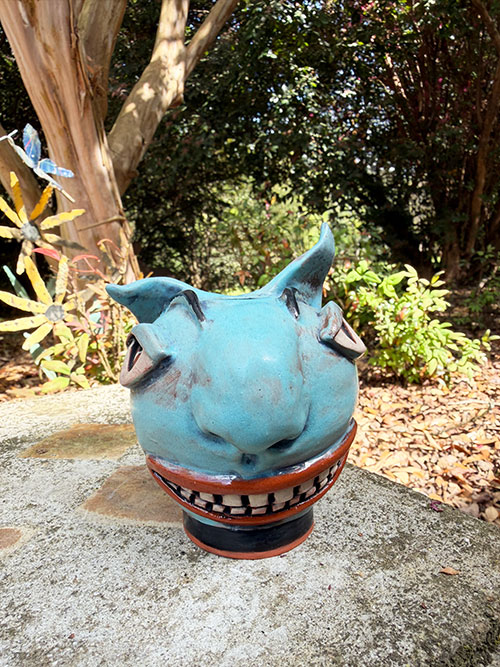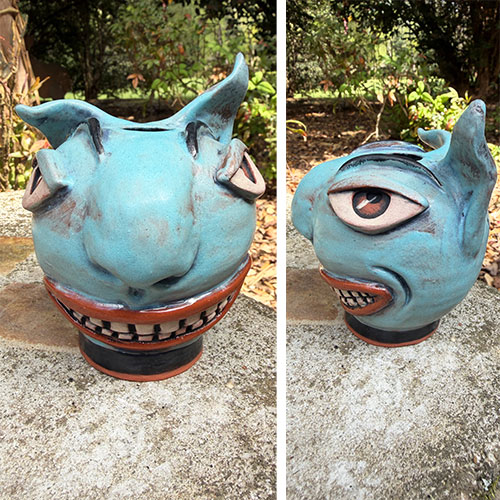 These ceramic cat face vessels by Ricky Boscarino embody the mischievous, theatrical spirit that defines his work at Luna Parc. Each piece is hand-built and highly expressive, featuring exaggerated feline features—arched brows, sly eyes, toothy grins, and animated contours that give every face a distinct personality.