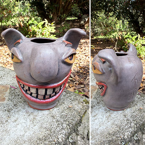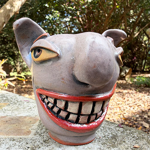 These ceramic cat face vessels by Ricky Boscarino embody the mischievous, theatrical spirit that defines his work at Luna Parc. Each piece is hand-built and highly expressive, featuring exaggerated feline features—arched brows, sly eyes, toothy grins, and animated contours that give every face a distinct personality.
