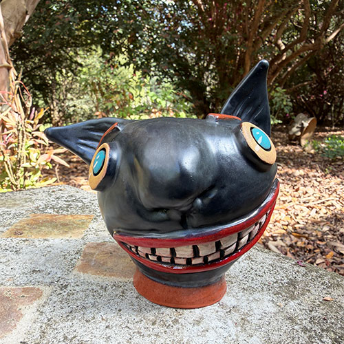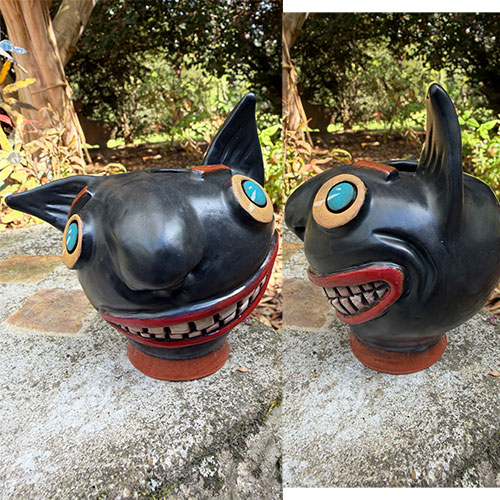 These ceramic cat face vessels by Ricky Boscarino embody the mischievous, theatrical spirit that defines his work at Luna Parc. Each piece is hand-built and highly expressive, featuring exaggerated feline features—arched brows, sly eyes, toothy grins, and animated contours that give every face a distinct personality.