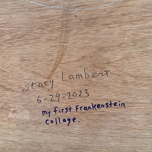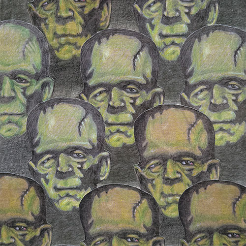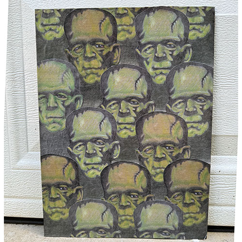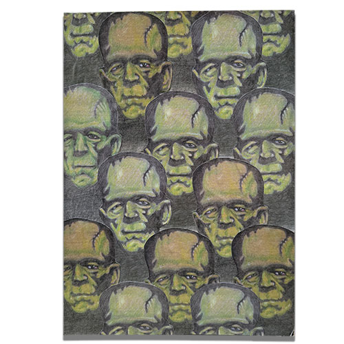 Stacy likes to take a focus break from pottery making from time to time and put his imagination to work in different mediums. This is a collage he created from copies of his Frankenstein drawing and mounted on a thin board. Measures 11,.25" x 15.5". Ships with tracking and insurance for $18. Does not ship outside the continental USA.