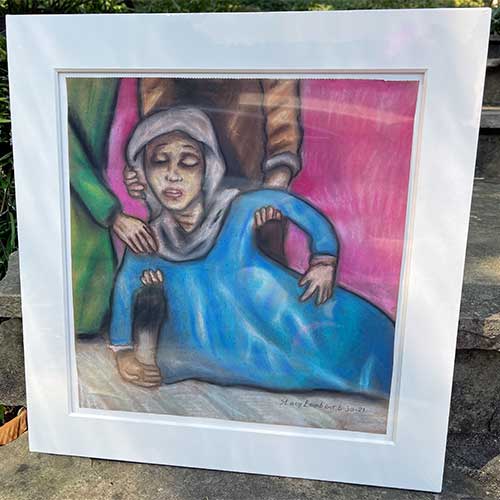 As a bit of a break Stacy took to creating a couple pastels pieces, using kraft paper bags. We wanted to protect the art and had them floated (to protect the pastel) and matted. Just choose a frame to compliment your decor and you're good to go. Image is 12" x 13". Matted to 17.5" x 18".