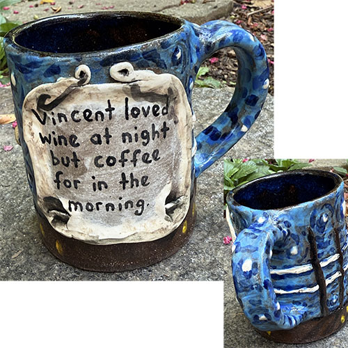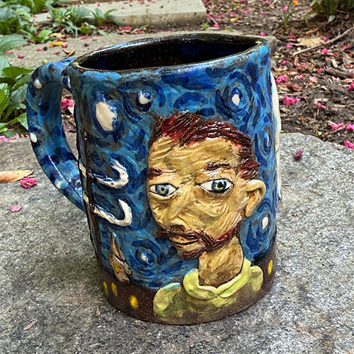The Starry Night mugs are one of Stacy's best selling items. 4" tall, 3" top opening and 3.25" base.