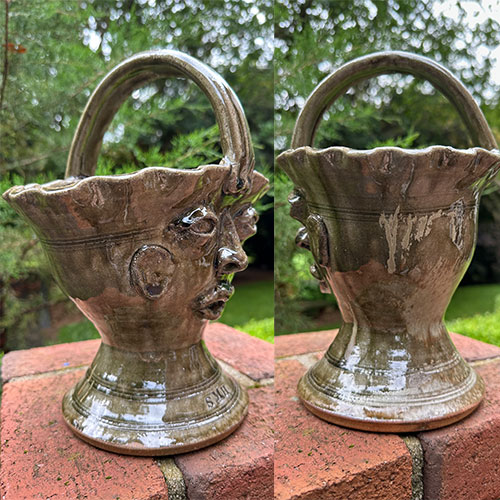 Along with a small, but growing number of potters who have been influenced by Burlon and the Catawba Valley tradition, I manipulate local clay bodies, woodfire in a groundhog kiln, and predominantly use a homemade alkaline glaze. I typically make traditional, functional forms such as jugs, jars, pitchers, mugs, and vases, including various face jugs/forms. After moving to the Spartanburg area, I’ve learned more of both the traditional and contemporary potters of SC and the N Georgia region. These works influence my own work and I’m excited to see what comes next. - Stephen Harrison
