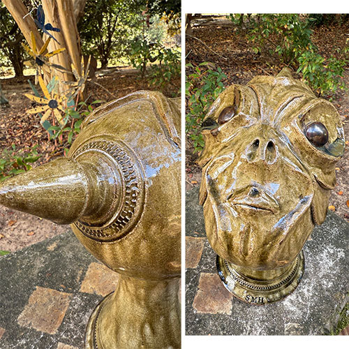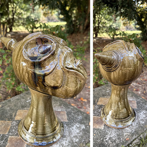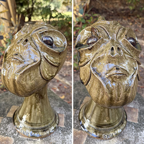 Along with a small, but growing number of potters who have been influenced by Burlon and the Catawba Valley tradition, I manipulate local clay bodies, woodfire in a groundhog kiln, and predominantly use a homemade alkaline glaze. I typically make traditional, functional forms such as jugs, jars, pitchers, mugs, and vases, including various face jugs/forms. After moving to the Spartanburg area, I’ve learned more of both the traditional and contemporary potters of SC and the N Georgia region. These works influence my own work and I’m excited to see what comes next. - Stephen Harrison