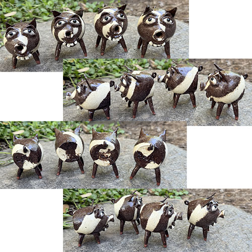 This is a wonderful set consisting of mama and 4 piglets. Mom is 7.5" tall, 9" nose to tail and 4.5" deep. Piglets are 3" tall, 3" nose to tail and 1.75" deep.