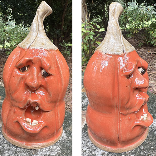 Tim Whitten is a self taught potter (now living in AL) who began by making functional wares like bowls and birdhouses in 2010 before quickly making a shift to face jug pottery. Many of his pieces draw inspiration from traditional American folk pottery with an emphasis on face jug pottery.