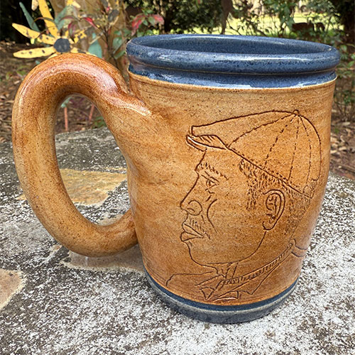 This face mug is 4.5" tall with a 2.75" base and 3.25" top opening..