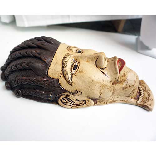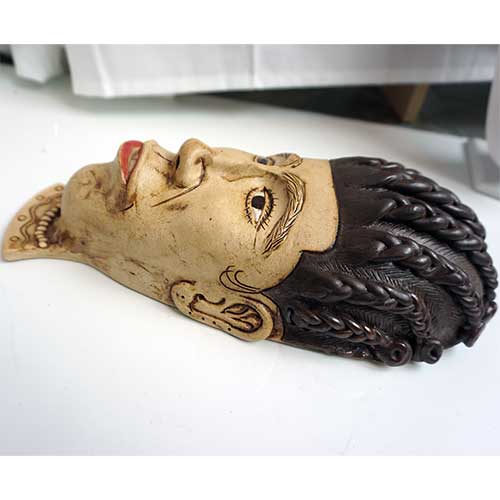 This mask measures 13.25" long and 6" wide. 3" deep. Wire hanger on back.