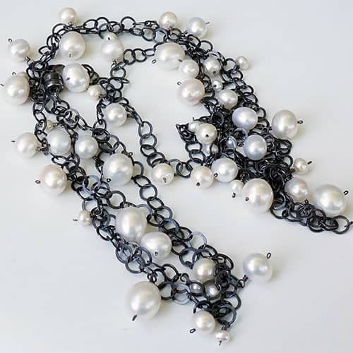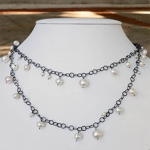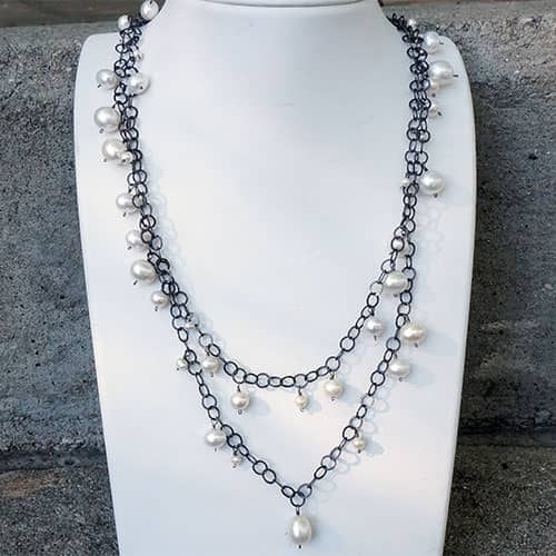 Artist Alena Fisse-Karr is the creative force behind Calliope Jewelry located in Seattle, WA. Alena studied with jewelry artists around the world from Bali to Seattle. Calliope Jewelry combines sterling silver (in our selection here, the silver is oxidized) and gold with high quality hand selected gemstones and freshwater pearls.