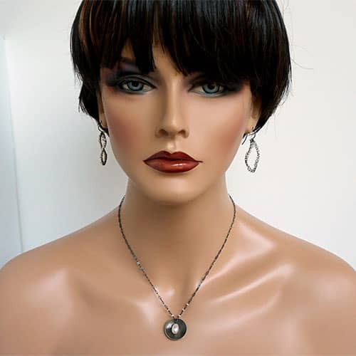 Artist Alena Fisse-Karr is the creative force behind Calliope Jewelry located in Seattle, WA. Alena studied with jewelry artists around the world from Bali to Seattle. Calliope Jewelry combines sterling silver (in our selection here, the silver is oxidized) and gold with high quality hand selected gemstones and freshwater pearls.