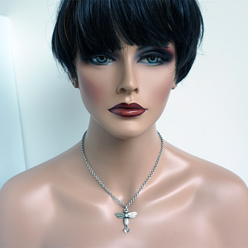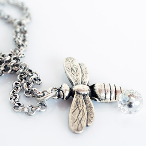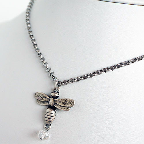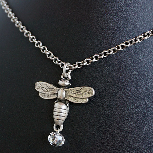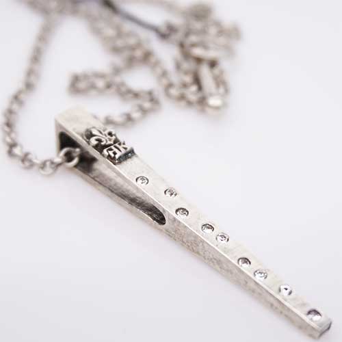 This necklace features 17” of FK rolo chain with Swarovski studded Fleur De Lis spike, 2.5" long. Sterling Silver Plated. Toggle closure. Not adjustable.