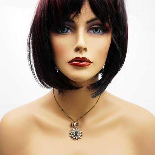 It has a kind of industrial feel because of the brass link chain and silver toned layers of flowers. Glass beads and sparkly crystals finish the look. Can be a layering piece. Measures 15.5" long with an additional 3" extender. Closes with lobster claw. Pendant is 1" diameter.