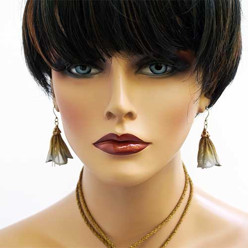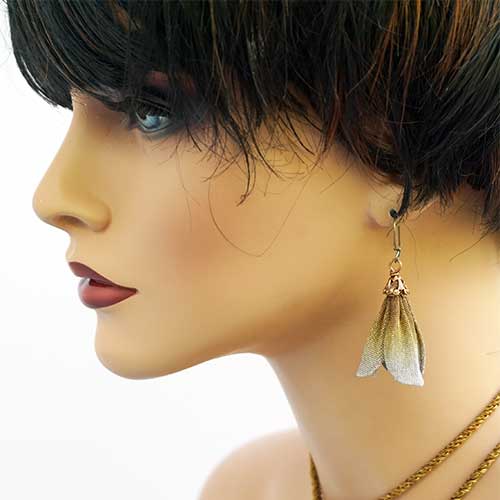 Cherry blossom bud earrings are 2.25" long from the center of the ear wire curve.