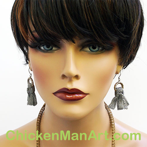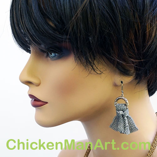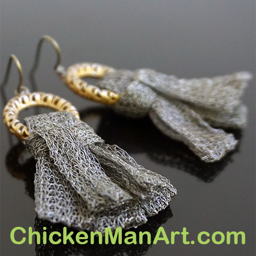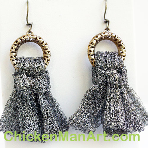 The earrings are metal ribbon tassel on .5" diameter filigree circle. Measures 2.25" long measured from the center of the earwire curve.