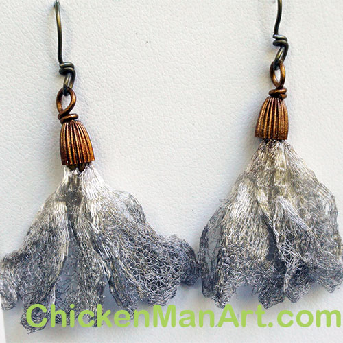 The earrings are fine mesh ribbon dangle. Measures 2" long measured from the center of the earwire curve.