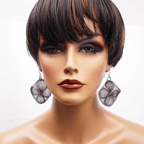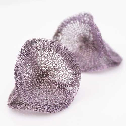 Sarah Cavender Metalworks utilizes a variety of metal meshes with screenings and knits being primarily industrial in origin. Chain and jewelry finding components complement their design philosophy. The flower and leaf collections are hand formed from sheets of brass wire cloth, and all products are hand soldered, plated, oxidized and finished on the premises, They hand paint the jewelry and accessories with colors which are custom mixed of bronze powders and dyes, and apply them in their studio.